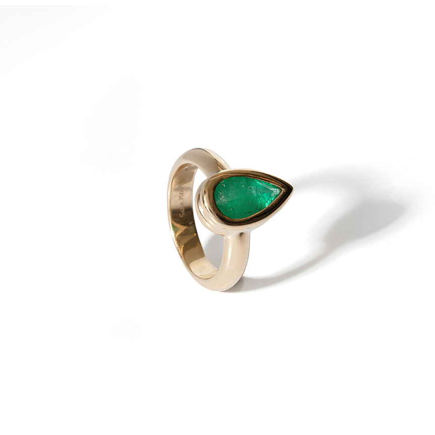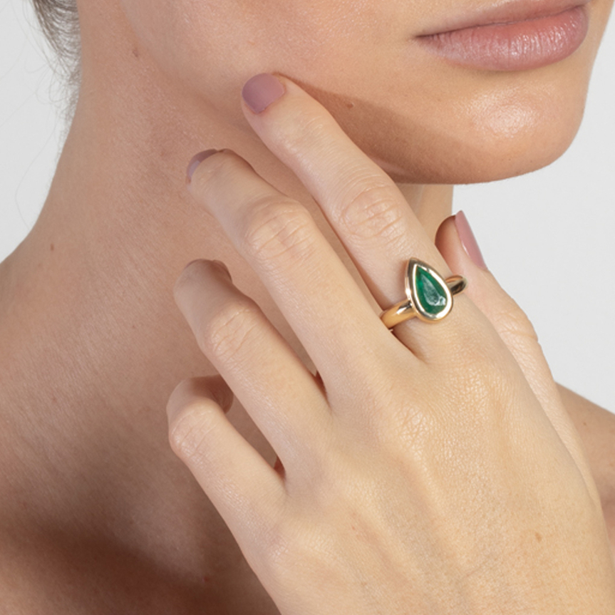 SARA Anel Bold Esmeralda Anel de ouro 18k com Esmeralda lapidação Gota