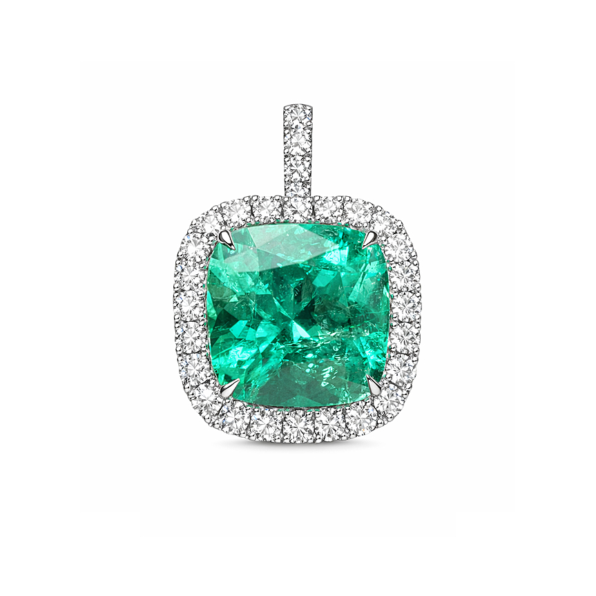 Anel confeccionado em ouro 18kt com esmeralda de origem Muzo, lapidação antique, pesando 10,90 quilates. O design inteligente permite que o pendente central seja desacoplado e utilizado como colar, transformando a joia em diferentes composições sem perder elegância ou valor.
