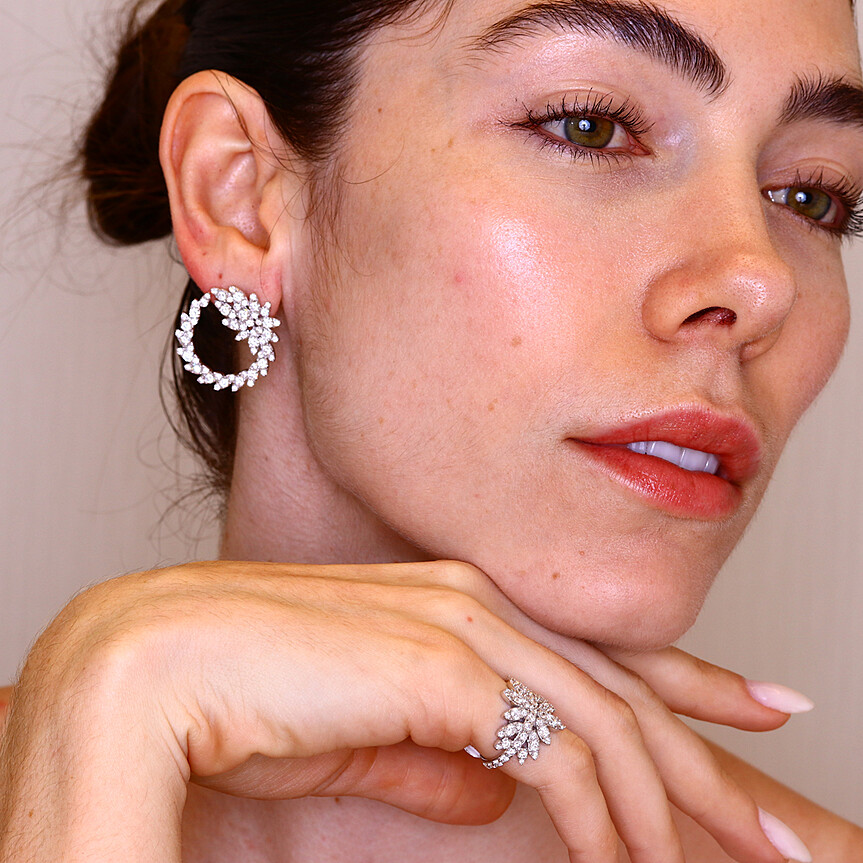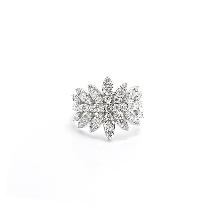 Anel Navetes de Diamantes em Ouro Branco 18K