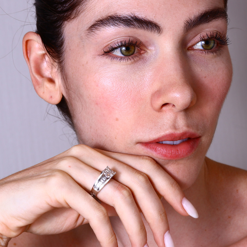 O Anel Pizza é a união perfeita entre sofisticação e exclusividade. Confeccionado em ouro 18K, ele exibe um design deslumbrante, com quatro diamantes centrais em lapidação princess, cercados por diamantes em lapidação baguete no aro. Perfeito para quem deseja uma joia com personalidade.