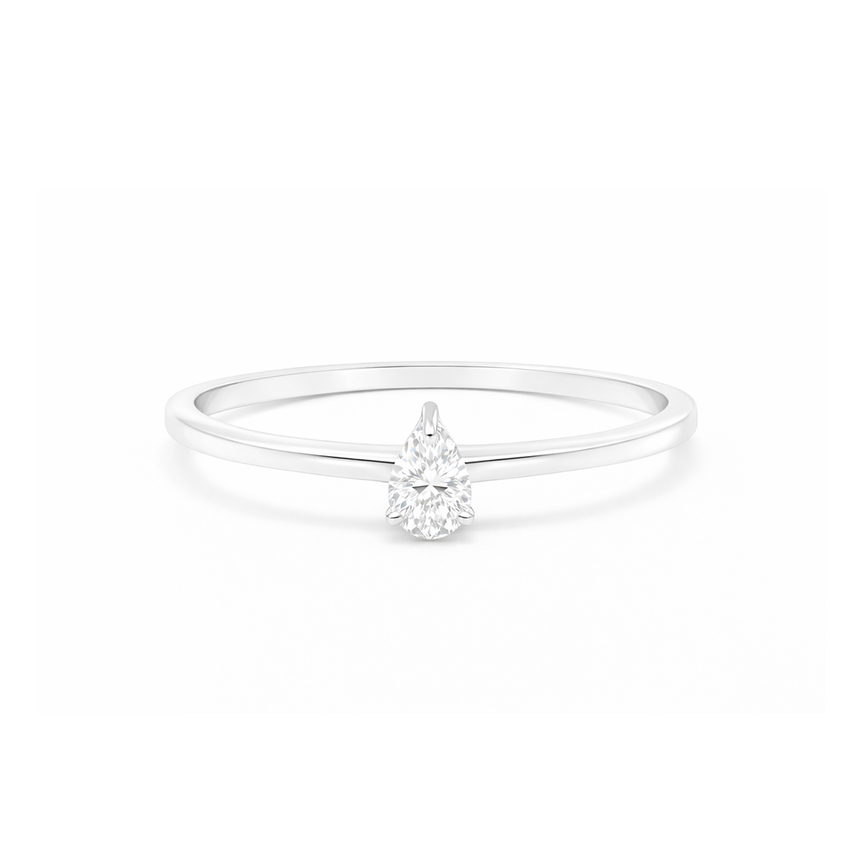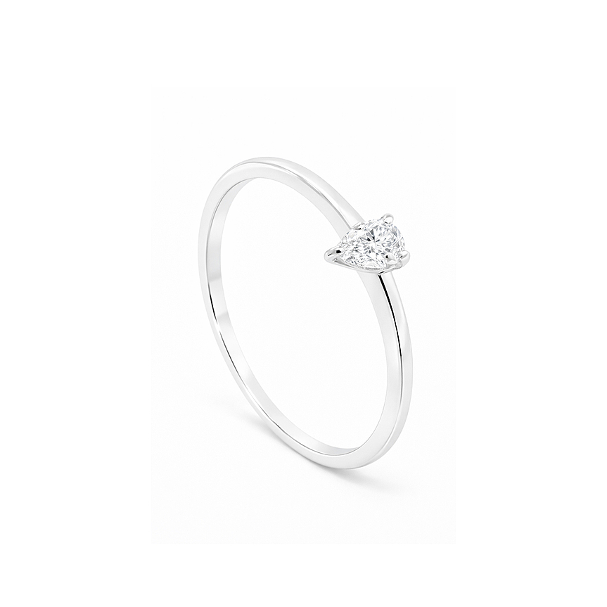 Anel solitário confeccionado em ouro 18kt com diamante lapidação gota de 15 pontos, cuidadosamente selecionado para valorizar brilho, proporção e elegância