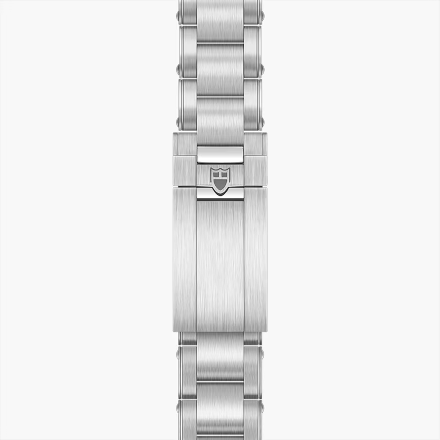 Bracelete de 3 elos em aço inoxidável com rebites, acabamento polido e acetinado, com fecho TUDOR “T-fit”