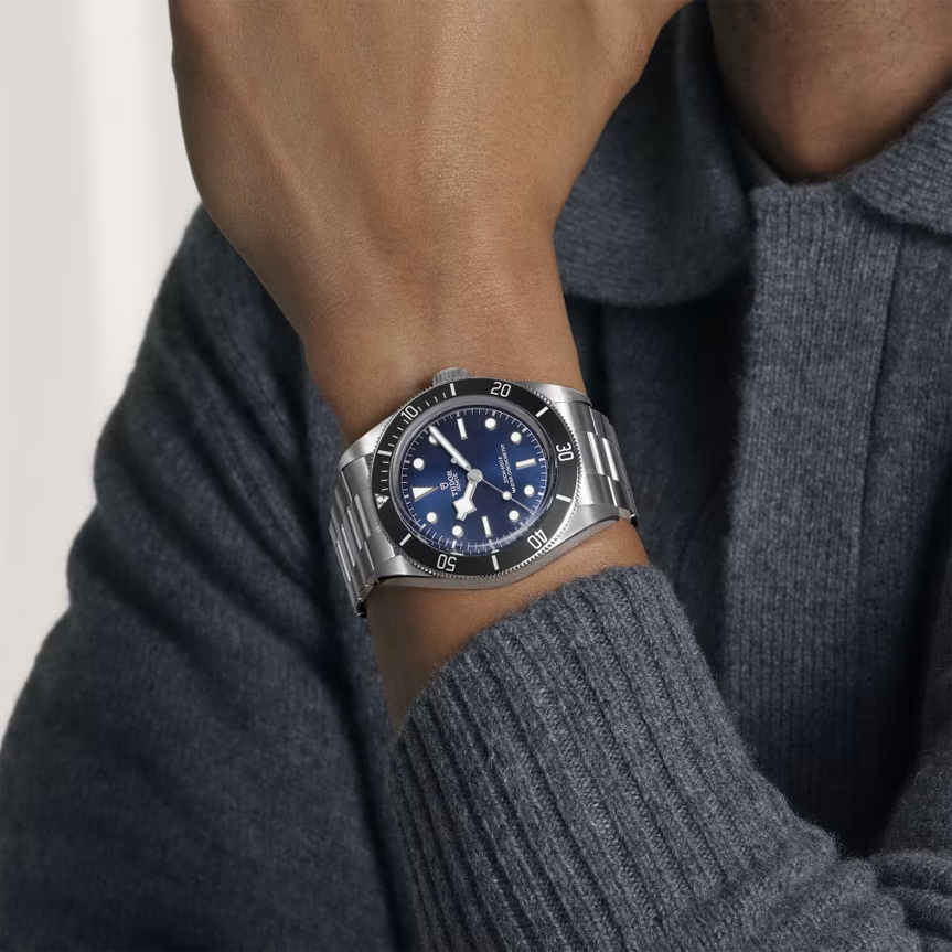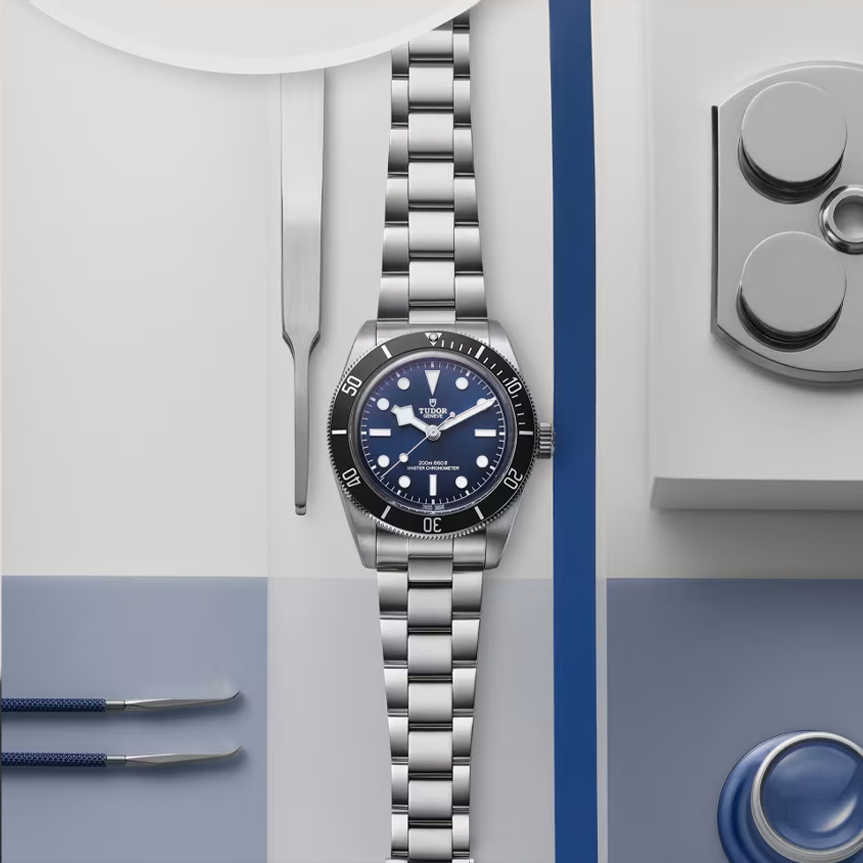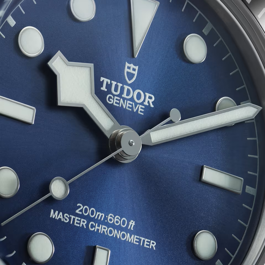 “TUDOR Blue” com acabamento sun e marcadores de horas aplicados