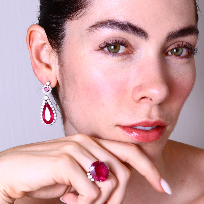 BRINCO CORAÇÃO SARA DE OURO 18K RUBELITA LAPIDAÇÃO CORAÇÃO