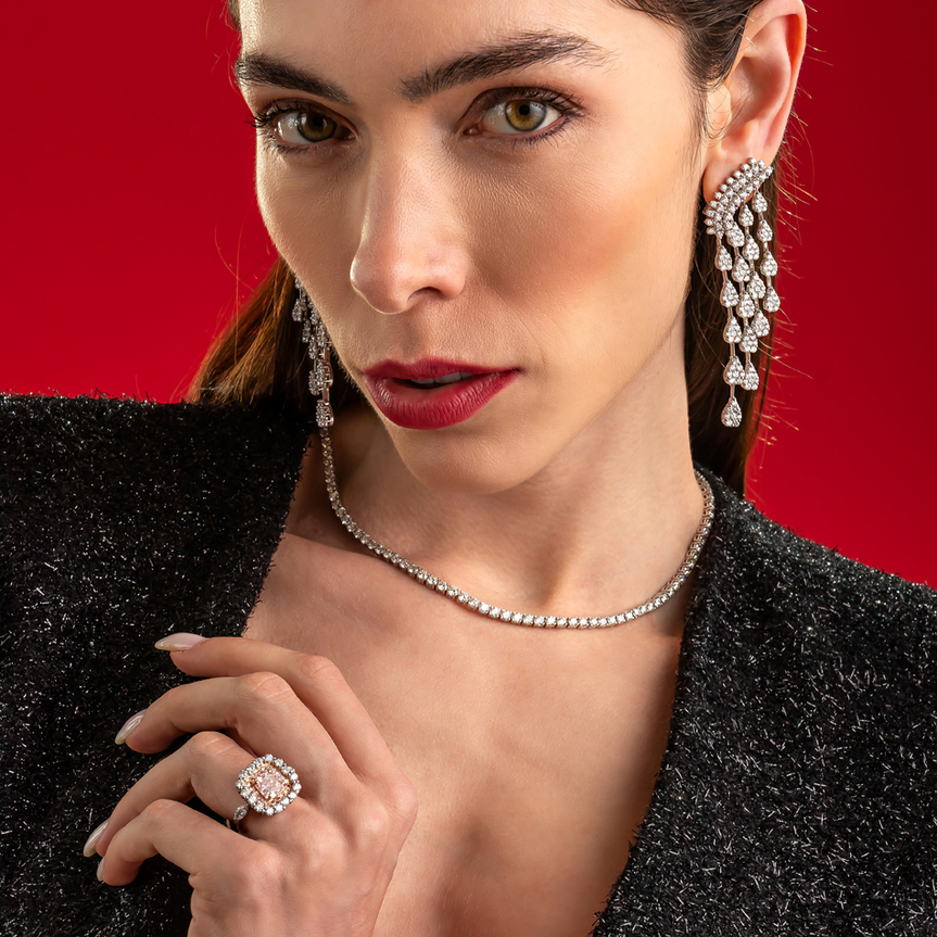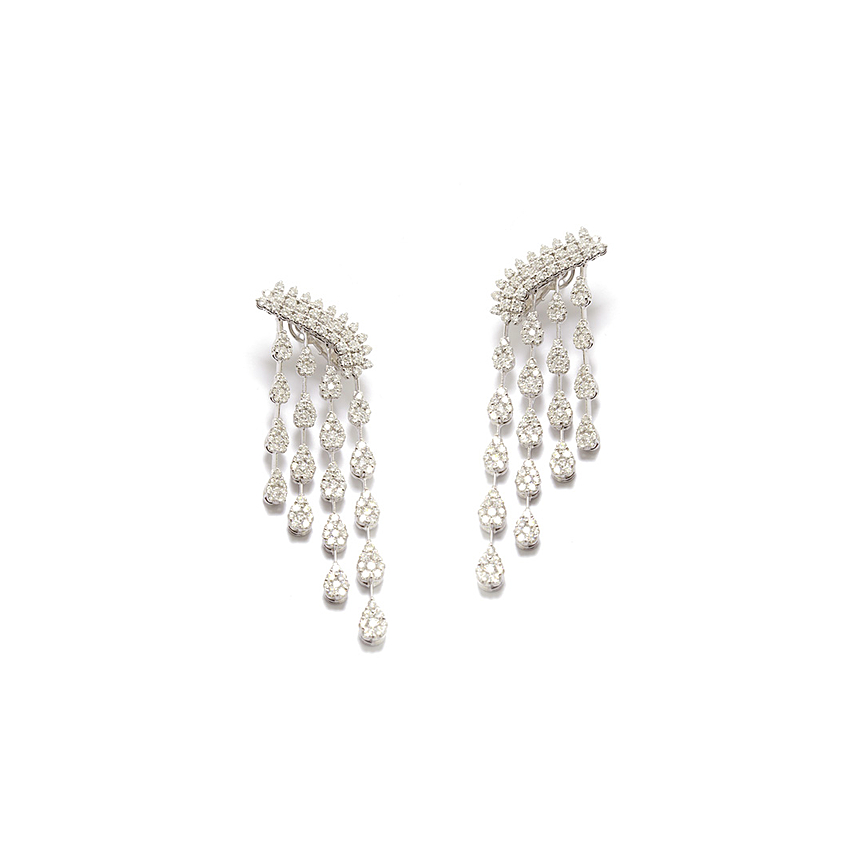 SARA Brinco Fios Gotas Brinco de quatro fios com gotas pizza de diamantes.