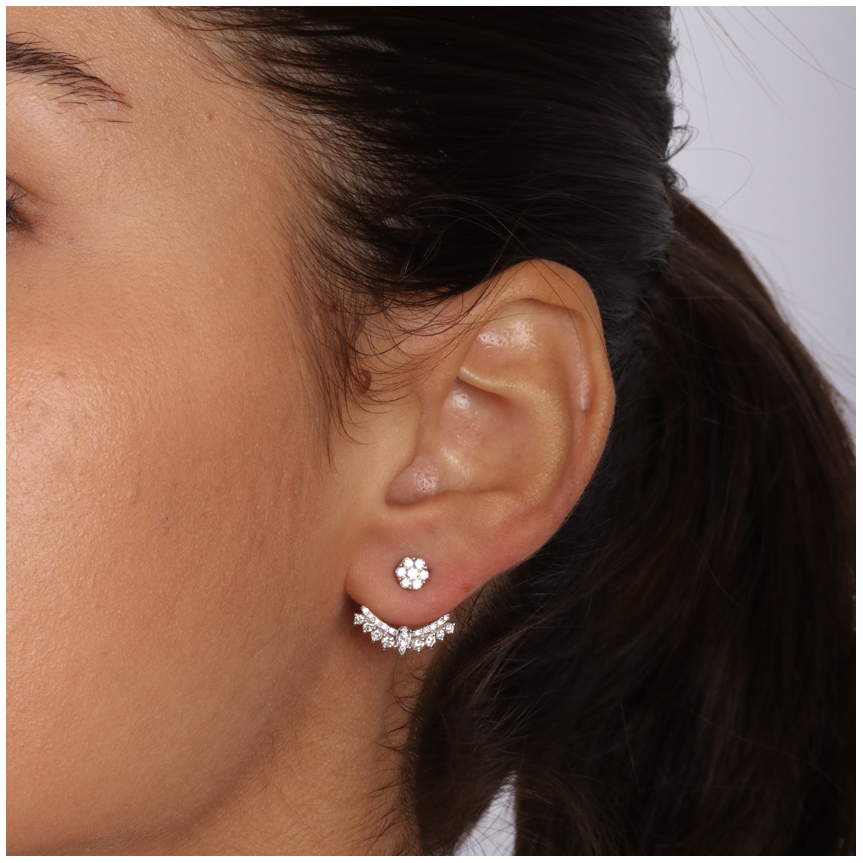 Brincos sorriso com diamantes que iluminam o rosto com charme e brilho suave.