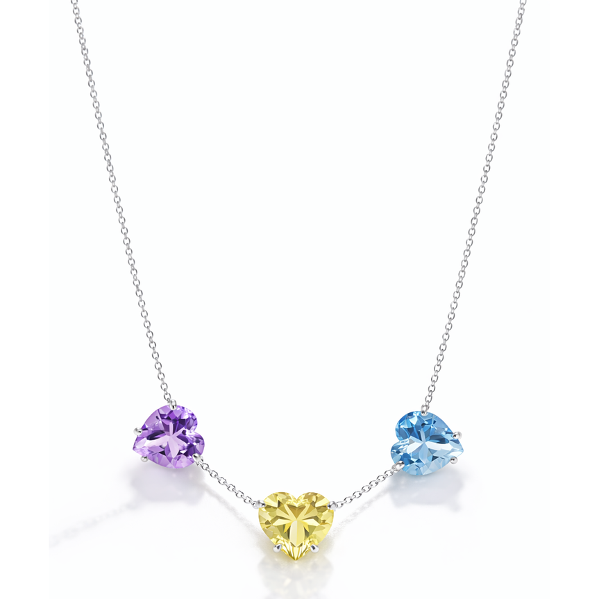Gargantilha de ouro 18kt Três Corações de Ametistas