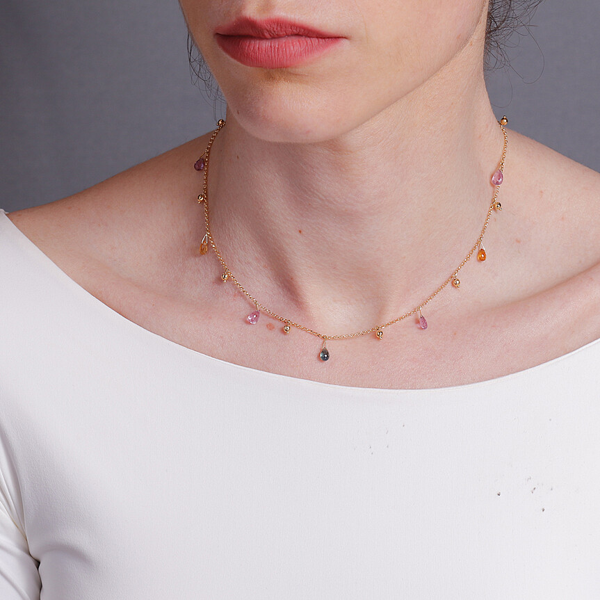 Gargantilha Pendente Safiras