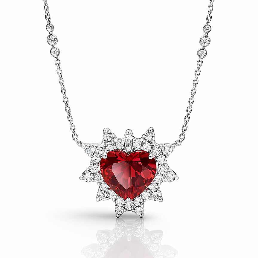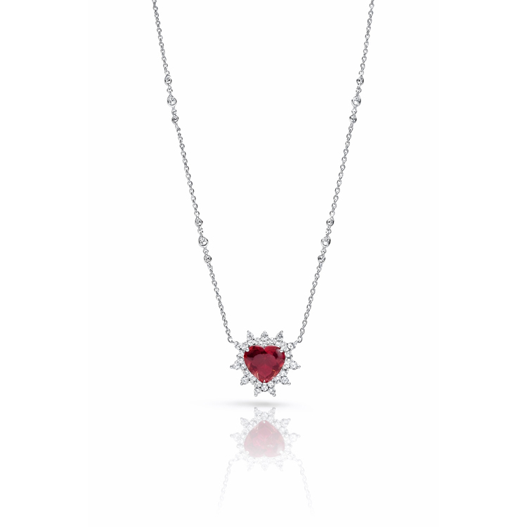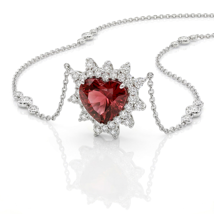 Gargantilha Coração de Rubelita com Diamantes em Ouro 18K