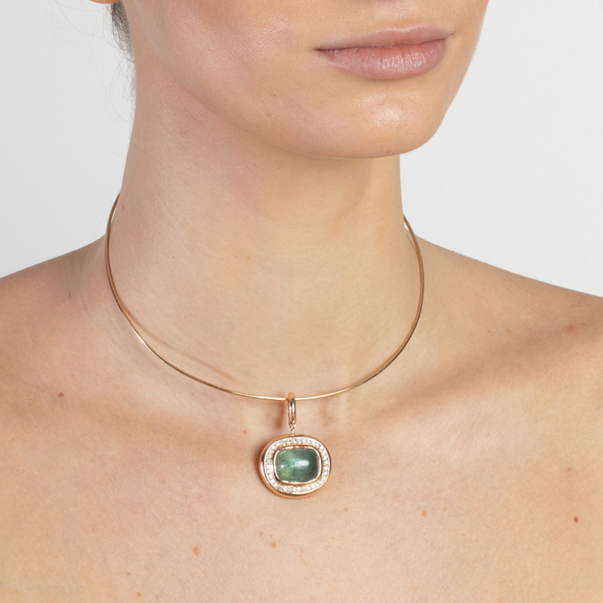 SARA Pendente Bold Turmalina Pendente de ouro 18k com Turmalina lapidação Cabouchon