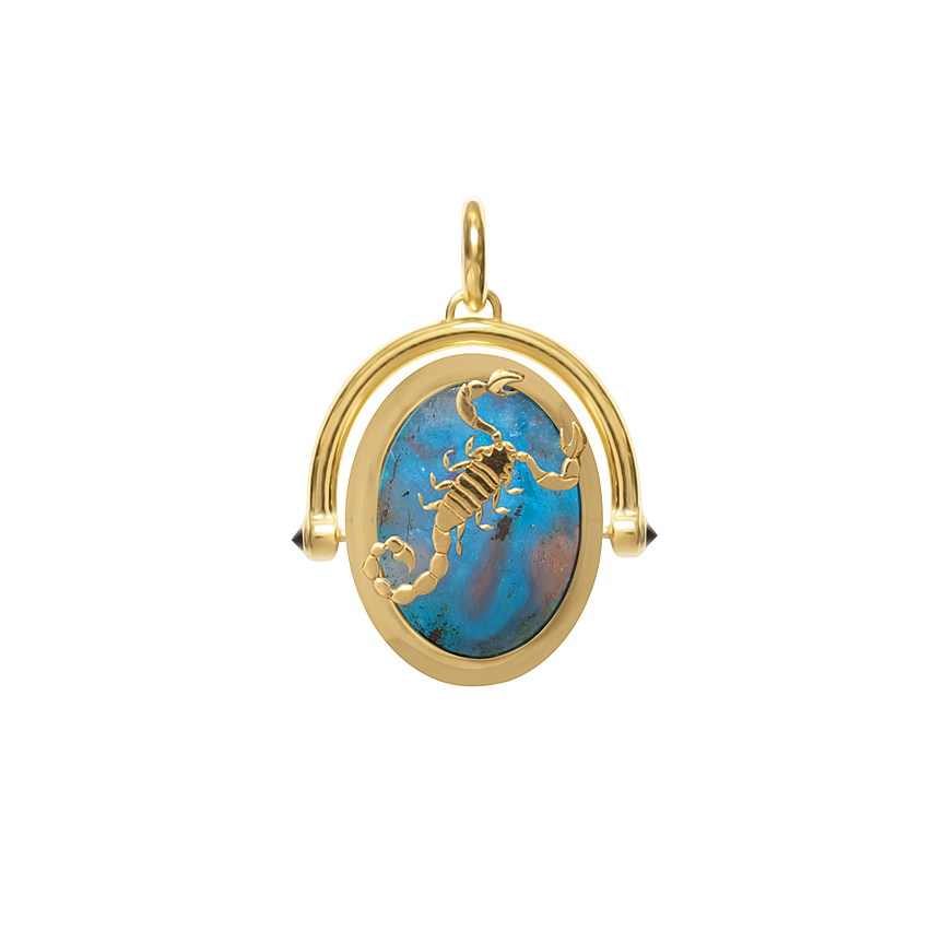 Pendente Escorpião com Turmalina Paraíba de ouro 18kt que combina intensidade e luz magnética.
