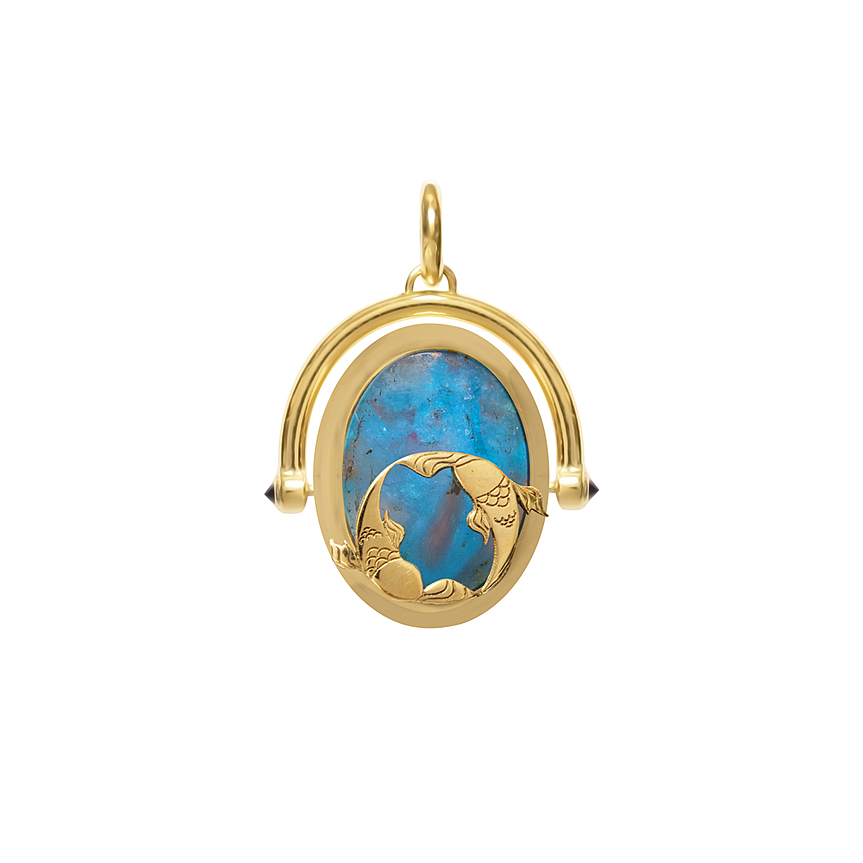Pendente Peixes com Turmalina Paraíba de ouro 18kt que une fluidez e brilho sereno em tom oceânico.