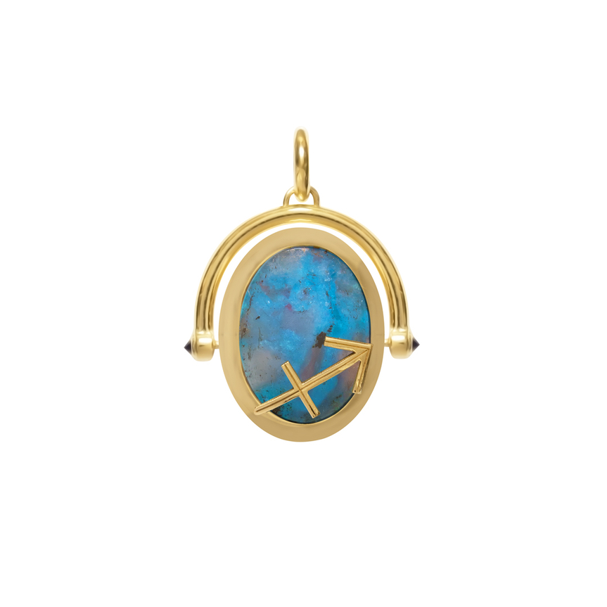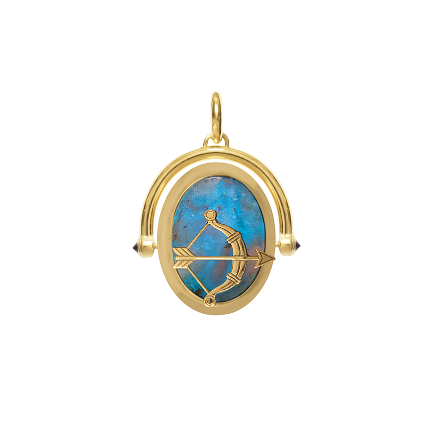 Pendente Sagitário com Turmalina Paraíba de ouro 18kt que simboliza expansão e brilho vibrante.